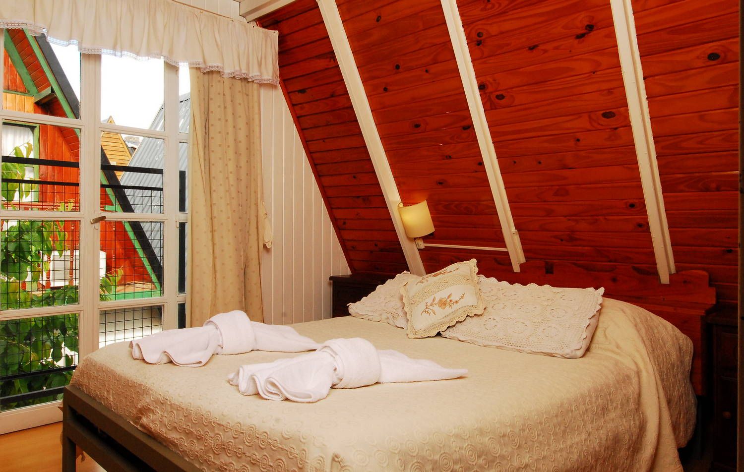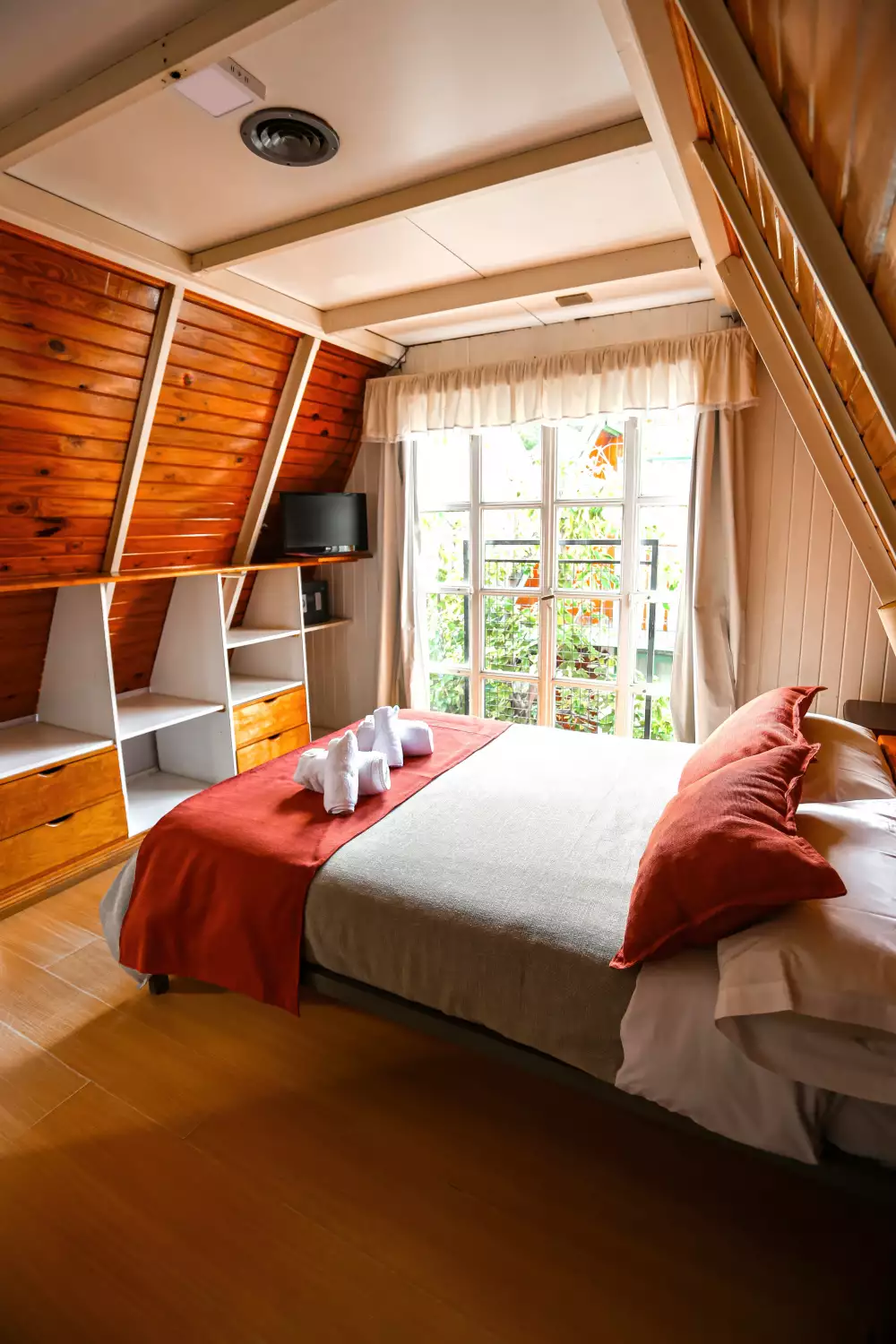 Las cabañas están revestidas en madera y piedra, un refugio ideal para descansar, desconectar de la rutina diaria, ideales para pasar fines de semana, vacaciones o simplemente como lugar de trabajo, con la calidez del entorno patogónico que nos brinda la aldea de montaña.